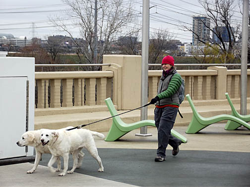 | Helen and her two dogs near the end of the walk. |